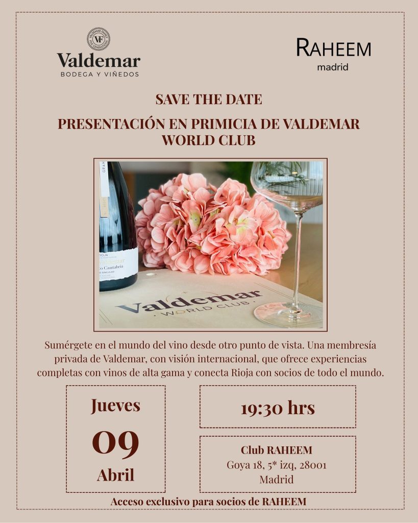 Desde Club RAHEEM tenemos el agrado de invitarle a una exclusiva Cata de Contrastes, dirigida por Bodegas Valdemar, reconocida casa vinícola y referente de innovación en La Rioja.