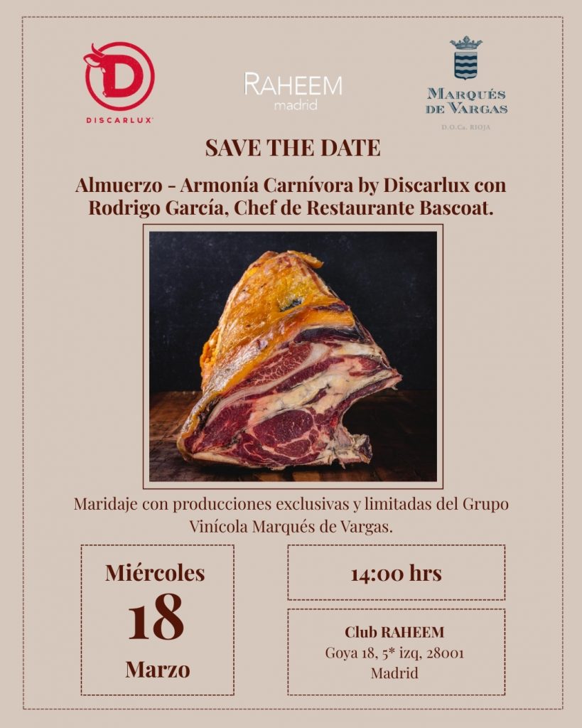 Las Bodegas y Viñedos Marqués de Vargas, partner enológico de Club Raheem, nos ofrecerán una cata de sus mejores vinos maridados con productos gourmet.